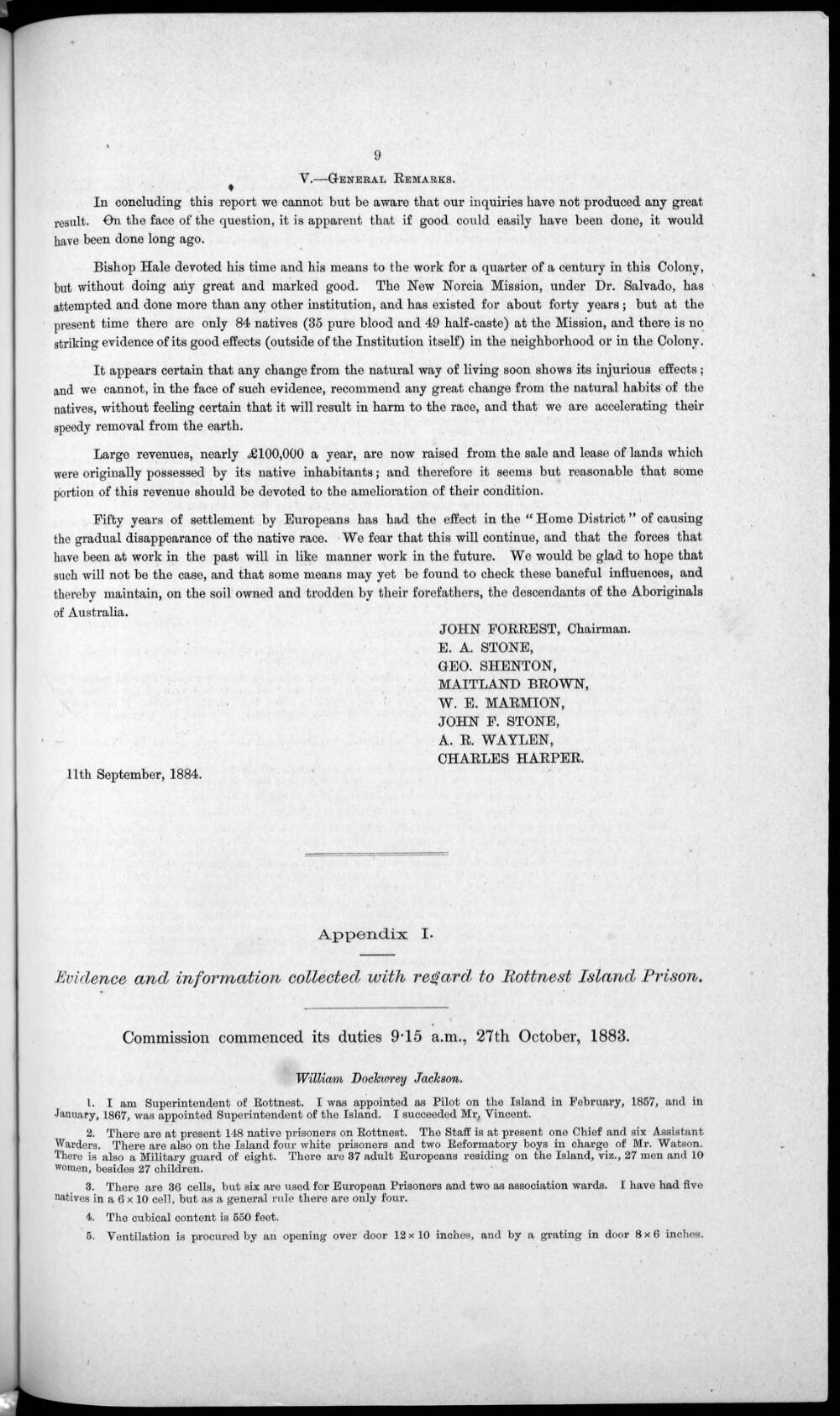 Legislative Council of Western Australia, Report of a Commission appointed by his Excellency the Governor to Inquire into the Treatment of Aboriginal Native Prisoners of the Crown in this Colony: And Also into Certain Other Matters Relative to Aboriginal Natives. Votes and Proceedings. Perth: Government Printer, 1884, p.9. Web. 23 Feb. 2015. <http://www.nla.gov.au/apps/cdview/?pi=nla.aus-vn1057351-5x-s9-e>
